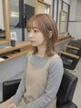 あごラインで揃えた切りっぱなしボブ。表面にほんのりレイヤーを入れて重さの中に軽さをプラス。首元は自然なくびれが出る設計で、まとまりやすくツヤ感が際立つ大人シンプルボブ。