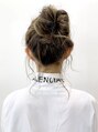 高めにお団子シニヨンし顔周りは強めに巻いてウエットに。【気に入ったスタイルは「ブックマークする」ボタンを押して、ご来店時ご提示ください】暖色系カラー,パープルカラー,艶カラー,ショートバング,春カラー,外人風カラー,ハイライトグラデーション