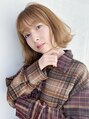 26ミリのコテで全体を外ハネにし、表面のみを内巻きで巻き浮遊感を出したスタイル。【気に入ったスタイルは「ブックマークする」ボタンを押して、ご来店時ご提示ください】暖色系カラー,パープルカラー,艶カラー,ショートバング,春カラー,外人風カラー