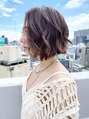 26mmのコテで外ハネベースに顔周りは波ウェーブでバックはスパイラル巻きにウェットスタイリング。【気に入ったスタイルは「ブックマークする」ボタンを押して、ご来店時ご提示ください】暖色系カラー,パープルカラー,艶カラー,ショートバング,春カラー