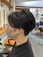 簡単にまとまるマッシュショート!バックのシルエットが少し高さがあるのが特徴の韓国マッシュ!いきなり上げるのに抵抗がある人は少し高さを出すくらいがちょうどいい感じに!センターパートが抜け感があってカッコいい!