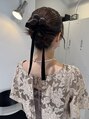 - 名駅/チャコールグレー ナチュラルブラウン ココアブラウン パールベージュ サイドお団子 ラウンドバング