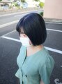 元々黄味が強めの髪質なので、ブリーチ後シャンプー台でアッシュ方向に傾けてます。カラーバスする事で、ブルー系カラーでも髪質によっては1回で入ります。