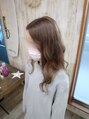 甘くとろんとしたミルクティーをイメージさせる、赤みのない透明感あふれるカラーリング。ベージュ系は補色に紫じゃなくピンクを使うのがポイントです。
