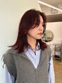 ブリーチなしチェリーレッド○#レイヤーカット#顔周りレイヤー#フェイスレイヤー#垢抜けカット#ミディアムスタイル#くびれミディ#シアーバング#外ハネボブ#コンパクトボブ#ぷつんとボブ#ブリーチなしカラー#東別院美容院#東別院美容室#名古屋美容院