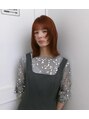 オレンジカラー/ミディアムレイヤー/前髪カット/顔周りカット