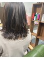柔らかダークグレージュ*ご来店時の髪の状態に合わせてセレクトしてカラーをします!カットは切りっぱなしスタイル!スタイリングの際にトップを内巻きにすると写真のようなデザインに★