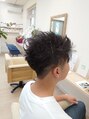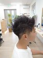 カットはグラデーション刈り上げとサイドにツーブロック、このカットの特徴はつむじ周りが1番長くなっておりノーパートにスタイリングしてもオールバックにスタイリングしても後頭部の絶壁を解消することができるのです。