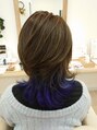 肩下あたり長さ大人女性美髪ミディアムシルビジュウルフレイヤースタイルです☆カラーリングではアンダーセクションブリーチ後ブルーパープルトップバイオレットベージュをグローバルミルボン髪質改善Treatmentで手触り良い潤艶な大人女性美髪スタイルに☆