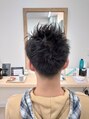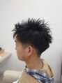 ツーブロックグラデーション刈り上げにコンケープショートレイヤーを入れて、ワックスやジェルなどのハード系スタイリング剤を使って全体的に毛先を立ち上げるスタイルとなっております☆頭の形が美しく見えるようカットしております☆