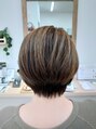 襟足ギリギリの長さから自然な前上がりのアウトライン、バックからフロントにかけて前下がりラウンドグラデーション、前髪長めの大人美人ショートグラデーションスタイルとなっております☆サイドにインナーブリーチonカラーのライトグリーンを入れ個性的に☆