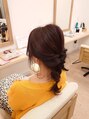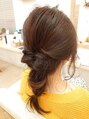 お客様自身でセルフプロデュースできる、いつものポニーテールに輪ゴム2つでできるアレンジを効かせてオシャレな大人女性になれるまとめ髪に☆