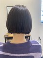 襟足ギリギリからアゴラインに向けてやや前下がりにカットしているミニボブスタイルです。首元がすっきりするので襟の高い洋服やマフラー・ストールなど巻くときに嵩張らないのでおススメです♪