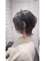 裾が収まる様にグラデーションカットし、襟足のみアイロンで外ハネし、あとは乾かしてもみこむだけてふんわり動きが出る様に、レイヤーを少し入れてあります♪カラーは透明感重視のアッシュグレージュです☆[20代 30代 ショート]