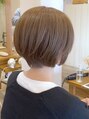 肩の力が抜けたさりげない女らしさが手に入る黄金バランスのショートボブ☆。カラーは細かいハイライトをベースにオリーブグレージュを入れて赤みを打ち消し透明感と柔らかさのあるカラーに。白髪染めでなくても白髪が目立ちずらくなります♪