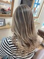 バレイヤージュで、根本が気にならないカラーになってます☆間から見える暗めカラーで筋感をだしてお洒落に!