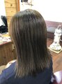 根元はダメージレス矯正、中間から毛先は髪質改善オリジナルMTトリートメント。アフターで8レベルのスモーキープラム(カラー)矯正後のアフターカラーでもツルツルサラサラの手触りです。