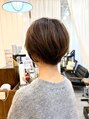 大人女性におすすめの小顔ショートヘア。丸みのあるシルエットで優しい印象に。襟足すっきりで首元も美しく、スタイリングも簡単。上品さと抜け感を両立したトレンドヘアです。【保存してカウンセリング時にお使いください。】