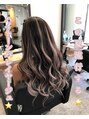 僕にしかできないバレイヤージュエクステ】 地毛はブリーチせずに ベースカラーを根元 暗めにカラーします その後、ハイトーンのエクステで デザインを入れていきます根元が暗めなので 根元が伸びてきてもプリンが気になりにくいのでオススメです(^^)