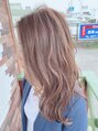 30代透明感抜群大人可愛いゆるふわピンクベージュS字ウェーブ