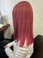 暖色系カラー韓国風ピンク髪質改善ストレートセミロング耳掛け
