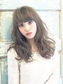 大きなウェーブに動きをつけて!!重めバングにトップの軽さ&外ハネなどの動きも今季はオススメ♪ツヤと少しのラフ感を楽しめるロングスタイル☆