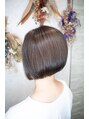 前下がりショートボブです。イルミナカラーで艶感ある髪色にさせて頂きます。ブリーチを使わないシークレットハイライトで白髪ぼかしを。