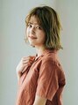 前髪も薄めに作り、全体的に隙間や透け感をプラスしています。カラーはブリーチをしてベージュ系カラーをオンカラーしています。26ミリのコテで毛先は外ハネに表面の中間はカールというよりうねりを入れてみて。[淵野辺/淵野辺駅][学割U24]