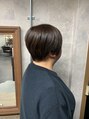- トップに丸みを出し、艶のある大人のショートヘア。襟足、顔周りの超絶でに合わせも◎