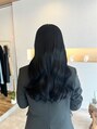 松葉葵/深みのあるネイビーカラーが、洗練された大人っぽさと柔らかい透明感を演出。光の当たり方でさりげなく見える青みが個性的で、色落ちまで楽しめるスタイルです。しっとりとしたツヤ感が、髪の美しさをさらに引き立てています。