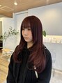 松葉葵/深みのある高発色カラーが印象的で、光を受けた時の艶感がとてもきれいな仕上がりです。セミロングの長さに均一な色のりが合わさり、髪そのものが健康的に見える落ち着きと華やかさを感じます。