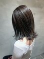 【髪の毛の赤みが強くなかなかアッシュにならない方向け】細かいハイライトを入れたデザインカラーです。透け感のあるダークアッシュカラーで肌馴染みもとても良いです。カットは毛先がパツっとなりすぎないナチュラルな外ハネミディアム カット。