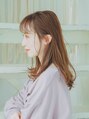 顔まわり前髪はシースルーで束間をだした顔まわりをスッキリだしたスタイルです。カラーはベージュ系の赤みのない透明感のあるカラーリングで軽くふわっとした印象にすることによって動きが出るスタイルになります。[五反野]