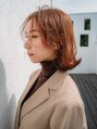 中と外とで色味の透け感が違って見えるオレンジブラウンカラー!毛先を重めに外はねワンカールに仕上げて、顔周りにふんわり束感を取り入れることで抜け感がでておしゃれに見えます!![五反野]