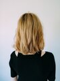 ハイトーンカラーの中でも特に抜け感が出るベージュカラーです。センターパートで根元を立ち上げスタイリングをしているのでより抜け感と大人の女性の印象が出てきています。全体も太めのコテで巻いているのでナチュラルな印象に仕上がっています。[五反野]
