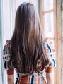 レイヤーを入れていないワンレングスのスタイルで毛先にしっかり重みを感じさせることが出来るスタイルです。顔周りは長めのバングからつながるようにカットしてあるため巻いても巻かなくても自然にフワッとしてくれる小顔効果にも最適なスタイルです。