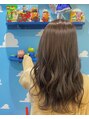 元の髪質がオレンジ味が出やすいベースだったので、一度ブリーチしてからの、スモーキートパーズとシルバーをMIX♪硬くて重たく見えがちな髪質もふんわり可愛いガーリースタイルへ☆ケアブリーチ使用なので、ダメージ少なめでグレージュカラーに♪