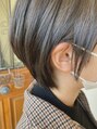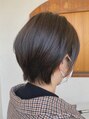 首元をスッキリとカットしたショートスタイルです☆サイドを耳が隠れる長さでカットして、厚みを少し取り、耳がチラッと見える感じに♪襟足は切りすぎず、ウェイトを軽くしてボブとは違ったカットの仕上がりになっています☆
