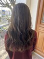 毛先をメンテナンスカットして、手触り感アップ☆カラーリングは、以前入れたハイライトをそのまま活かして、8レベルのオリーブグレーでワンメイクカラーしました♪毛先のトリートメントも効いていて、質感もGOOD◎