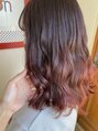 全体の明るさを、一度リフトアップして、毛先はグラデーションピンク♪根元付近はピンクブラウンで適度な明るさへ、毛先はビビッドなクリアピンク☆2種類のカラーリングを絶妙に馴染ませると、不自然さが無いグラデーションスタイルの完成です♪
