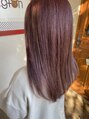 ワンブリーチした後に、ほんのりシルバーを混ぜた【ヴァイオレットピンク】で、透明感のある可愛い色味へ♪透明感を出すために、赤みが強すぎない中間色のヴァイオレットピンクをベースに、シルバーでほんのりくすませて完成☆ガーリー過ぎないピンクが◎