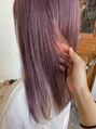 ワンブリーチした後に、ほんのりシルバーを混ぜた【ヴァイオレットピンク】で、透明感のある可愛い色味へ♪透明感を出すために、赤みが強すぎない中間色のヴァイオレットピンクをベースに、シルバーでほんのりくすませて完成☆ガーリー過ぎないピンクが◎
