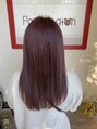 ワンブリーチした後に、ほんのりシルバーを混ぜた【ヴァイオレットピンク】で、透明感のある可愛い色味へ♪透明感を出すために、赤みが強すぎない中間色のヴァイオレットピンクをベースに、シルバーでほんのりくすませて完成☆ガーリー過ぎないピンクが◎