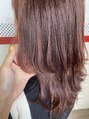 伸ばしかけのミディアムだけど、重くなりすぎないように、表面だけレイヤーを入れてふんわり動きを☆顔まわりにも軽くレイヤーを入れてあるので、アクセントになって◎カラーはハイトーンだったベースを活かして、ピラミンゴを使ってチェリーピンクに♪