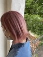 仕上がりのカットラインを綺麗に出すために、先に毛量調整をして、毛先をブラント気味にカット☆カラーはブリーチのリタッチをした後に、ピラミンゴカラーを薄くしっかり乗せて完成♪透明感のあるペールピンクが可愛いです