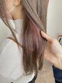 明度が明るくても、清潔感のある上品なベージュシルバー♪毛先はあまりレイヤーを入れないで、フラットな形にカット☆シンプルかつ、面が整えば髪質も艶感が増します♪サイドにイヤリングカラーでラズベリーピンクを入れてあるので、アクセントがついて◎