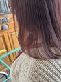 透明感を持たせたチェリッシュピンクです☆ピンクの色味が濃くなりすぎないようにほんのりとヴァイオレットとシルバーをミックス♪柔らかみのある色合いが特徴です!全体的にはフラットなミディアムボブ☆程々に軽くしてあるので扱いやすさは◎