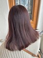 透明感を持たせたチェリッシュピンクです☆ピンクの色味が濃くなりすぎないようにほんのりとヴァイオレットとシルバーをミックス♪柔らかみのある色合いが特徴です!全体的にはフラットなミディアムボブ☆程々に軽くしてあるので扱いやすさは◎