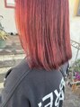 今季オーダーの多い、パキッとした発色のチェリーレッド☆一度ブリーチした後にビビッドなチェリーレッドでカラーリング♪赤系の色味は入りやすいけど抜けやすいのも難点なんで、そこに深めのレッドを追加☆赤系の色味マシマシなガーリースタイルです◎