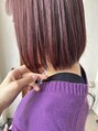 可愛いながら、品のあるほんのりヴァイオレットが入ったピンクスタイル♪ベースがそれなりに明るければ、ブリーチ無しでこのくらいまでのクリア感を出すことは可能です☆顔まわりだけレイヤーを入れて、フラットに仕上げたボブとの相性も◎